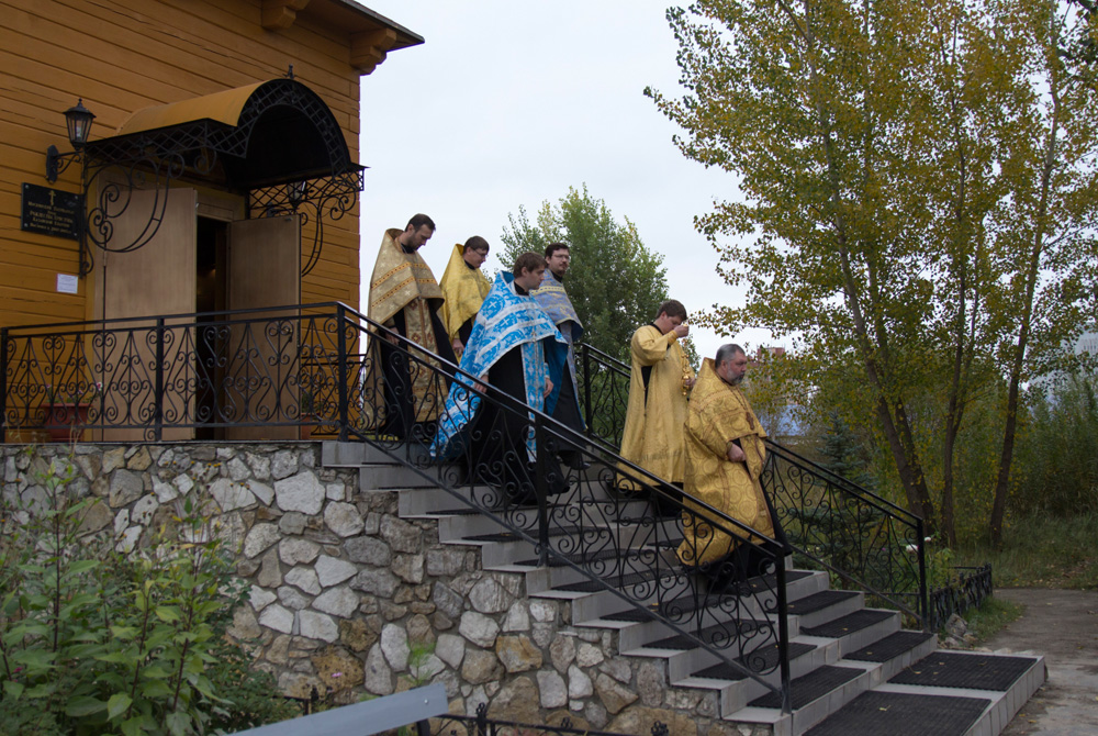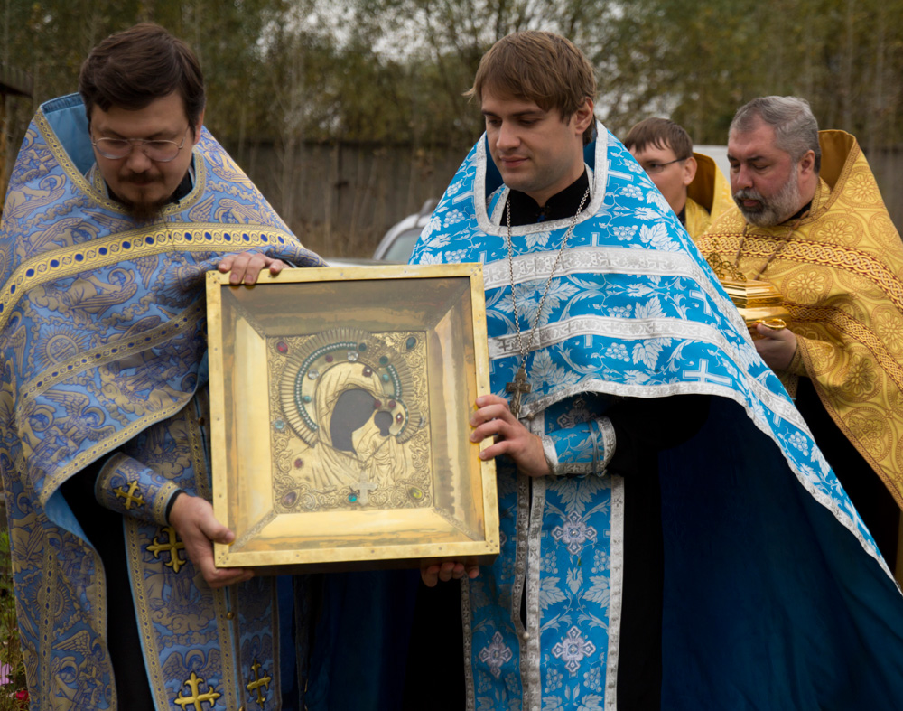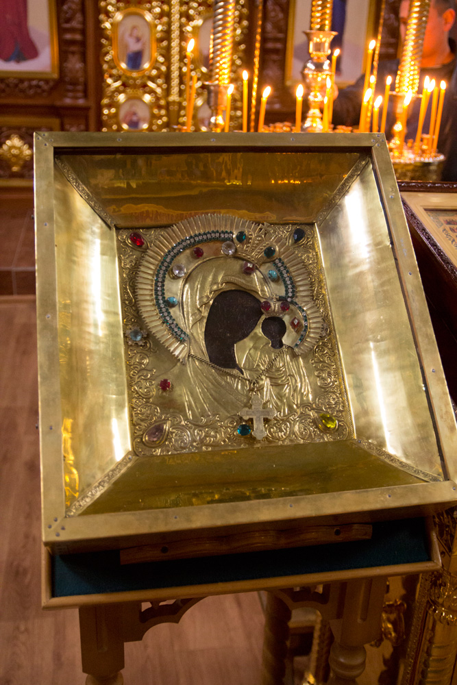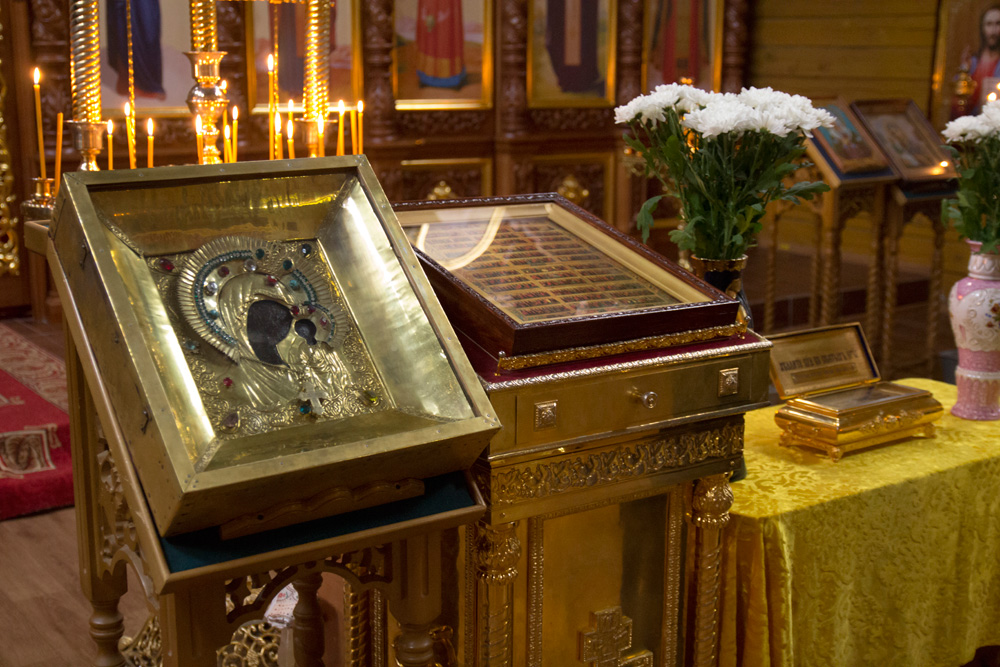 В четверг 26 сентября в Храм Рождества Христова были доставлены Казанская (Вышенская) икона Божией Матери и мощи святителя Феофана Затворника, привезенные из Свято-Успенского Вышенского монастыря.