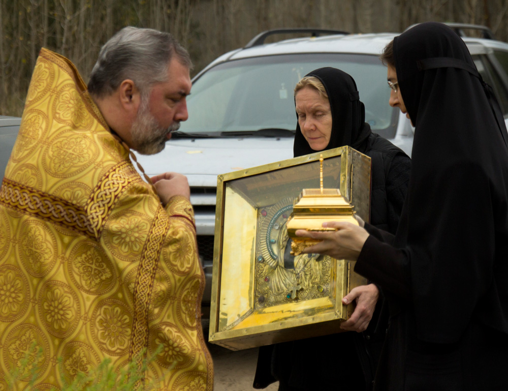 По прибытии святынь был отслужен молебен святителю Феофану Затворнику.