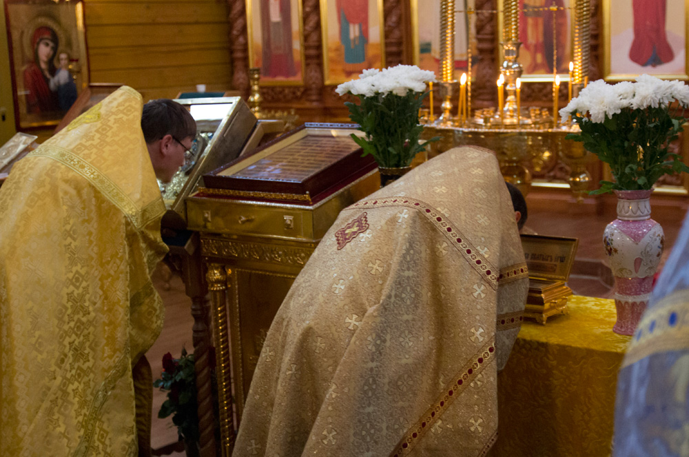 По прибытии святынь был отслужен молебен святителю Феофану Затворнику.